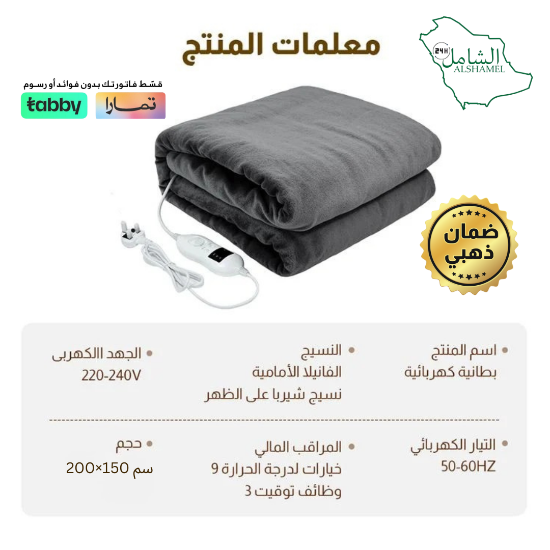 🧣✨ بطانية حرارية كهربائية فاخرة مقاس 200 × 150 سم – الدفء المثالي لشتاء السعودية!