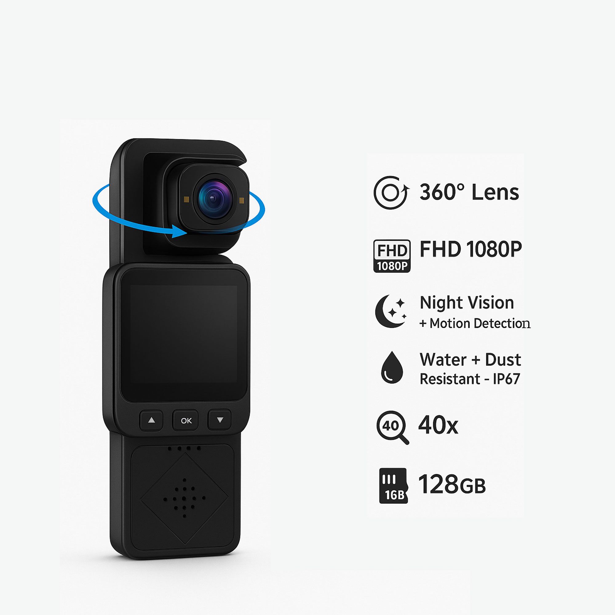 🎯 عدسة متحركة بزاوية واسعة لتصوير كل لحظة